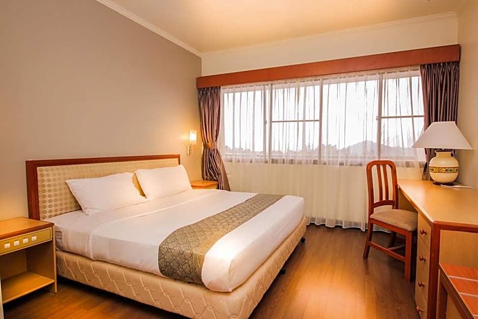 This newly renovated room features king-sized bedding, a seating area, electric kettle, bathrobes and slippers.